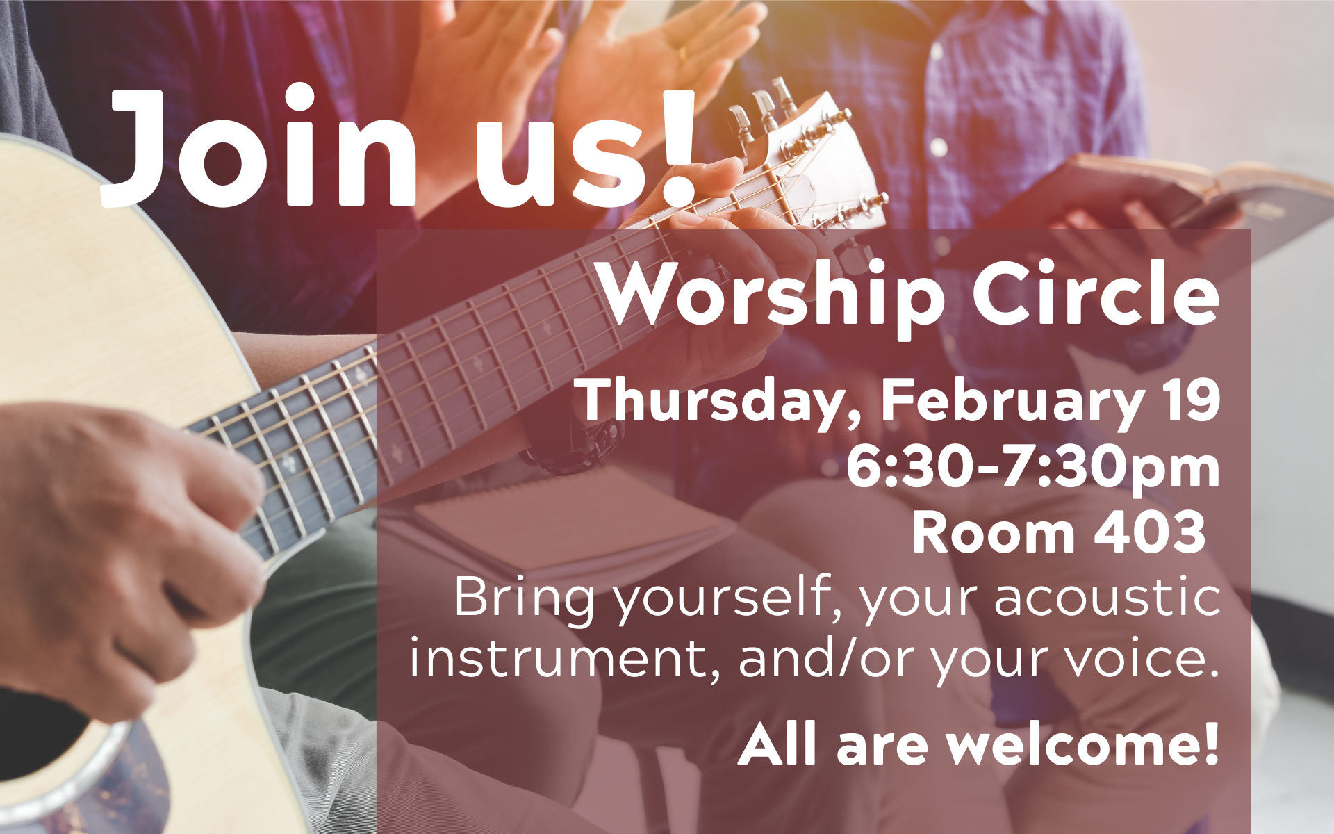 Worship Circle are a great way to gather with believers and praise the Lord, regardless of musical ability.